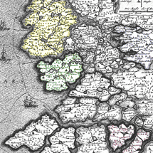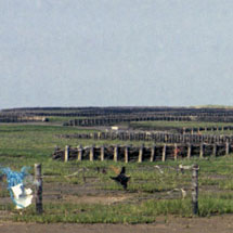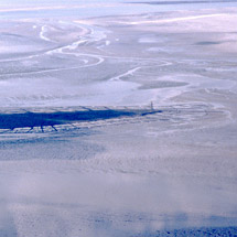 | Abb. 1: a)Karte von Nordfriesland um 1240 (Meyer) - b) Karte von Nordfriesland um 1651 (Meyer) - c) Lahnungen rund um Südfall - d) Lahnungen bei Westerhever (Eiderstedt): Der Zaun im Vordergrund trennt den Deich vom Vorland (Schutzzone 1 des Nationalparks Wattenmeer), dahinter typische Lahnungen: doppelte Holzpfahlreihen mit zwischengebundenen Faschinen (Reisigbündeln) |